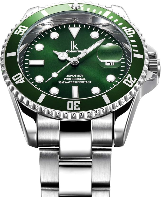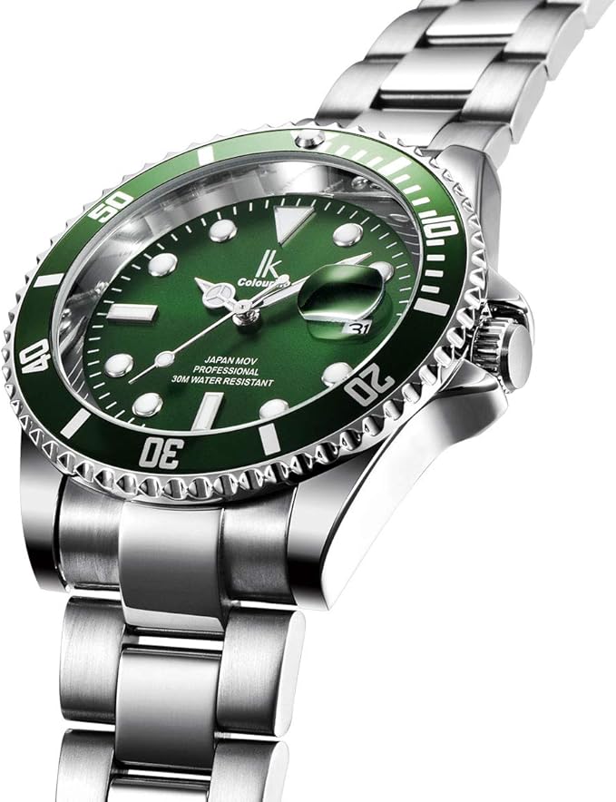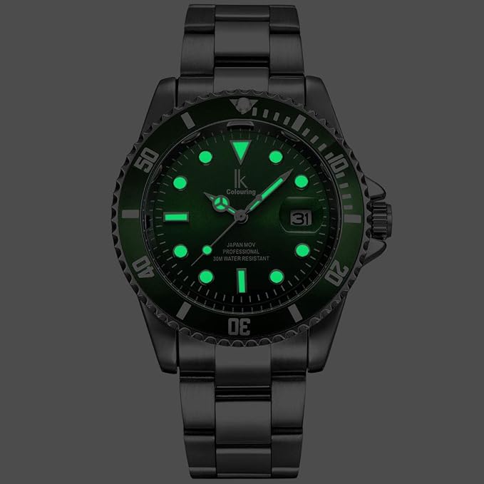 Bisel verde que enmarca con fuerza la esfera verde, creando un contraste limpio y sofisticado. La correa metálica añade un toque de robustez y distinción, ideal tanto para el día a día como para ocasiones formales